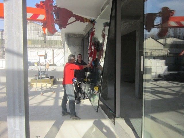 Démonter garde corps échafaudage et plateau pour passage des vitrages sur le mr7 précision assuré.