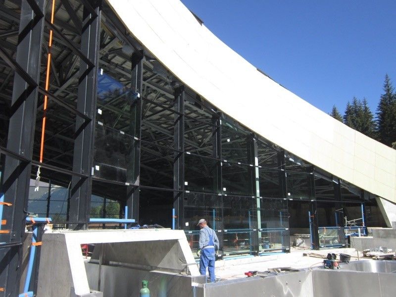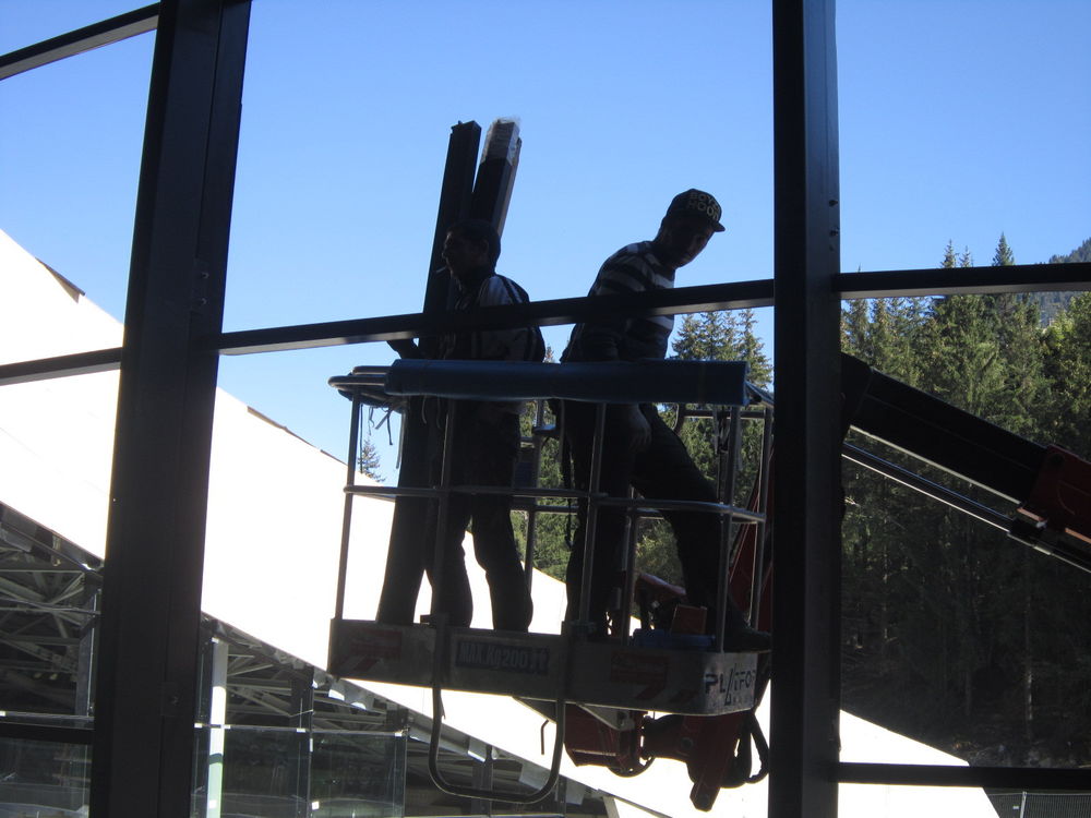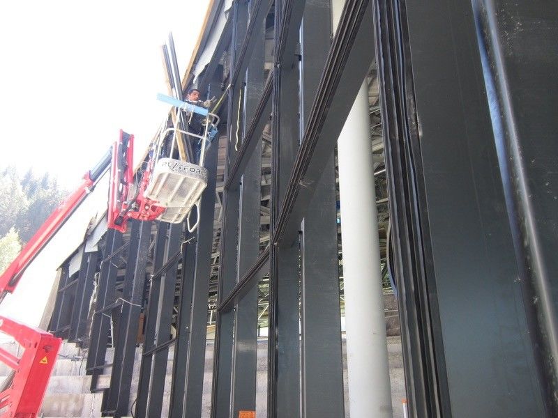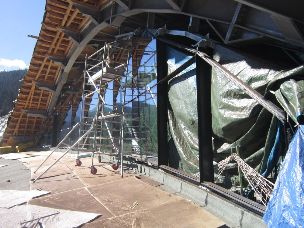 Pose de mur rideau au centre aquatique de Courchevel