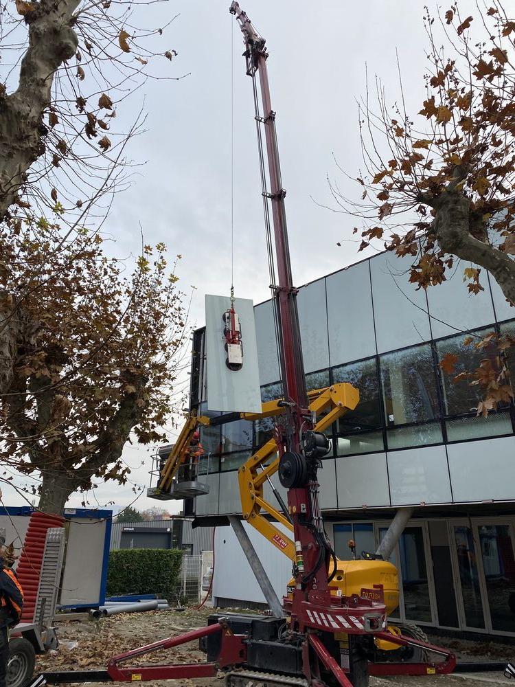 Nous apportons un appui technique terrain sur les grands vitrages : dépose, démontage, manutention, levage si nécessaire, et mise en sécurité du site.